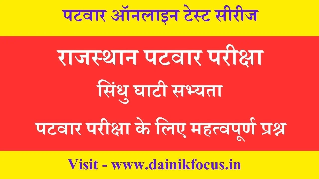 Sindhu Ghati Sabhyata MCQ : राजस्थान लोक सेवा आयोग व कर्मचारी चयन बोर्ड द्वारा आयोजित प्रतियोगी परीक्षा के लिए सिंधु घाटी सभ्यता से संबंधित अति महत्वपूर्ण प्रश्नोत्तरी।